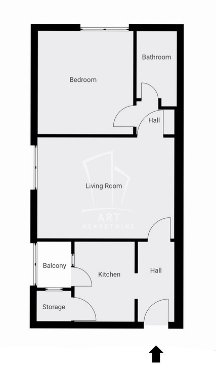 Prostorije: ulazni hodnik, kuhinja sa trpezarijom, ostava, lođa, dnevna soba, kupatilo, spavaća soba.