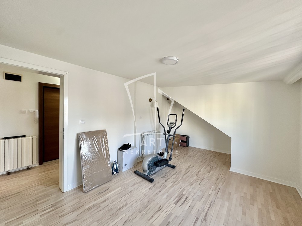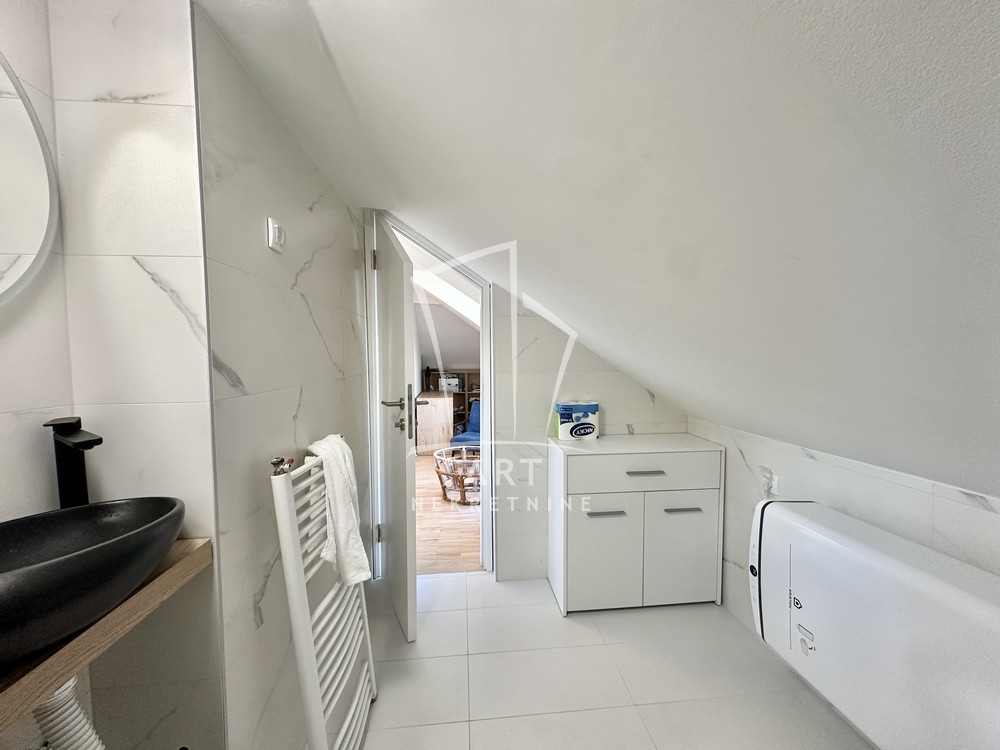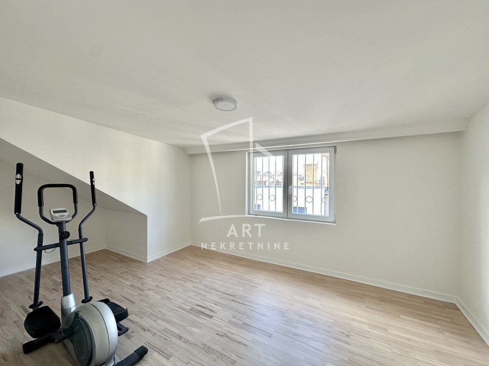Stan je na petom spratu, u potkrovlju zgrade, nedavno kompletno renoviran u perfektnom stanju, odmah useljiv. Sunčan je i svetao, trostrano orijentisan. Atraktivan stan koji pruža punu udobnost i poseban ambijent koji se očekuje od stanova u potkrovlju.