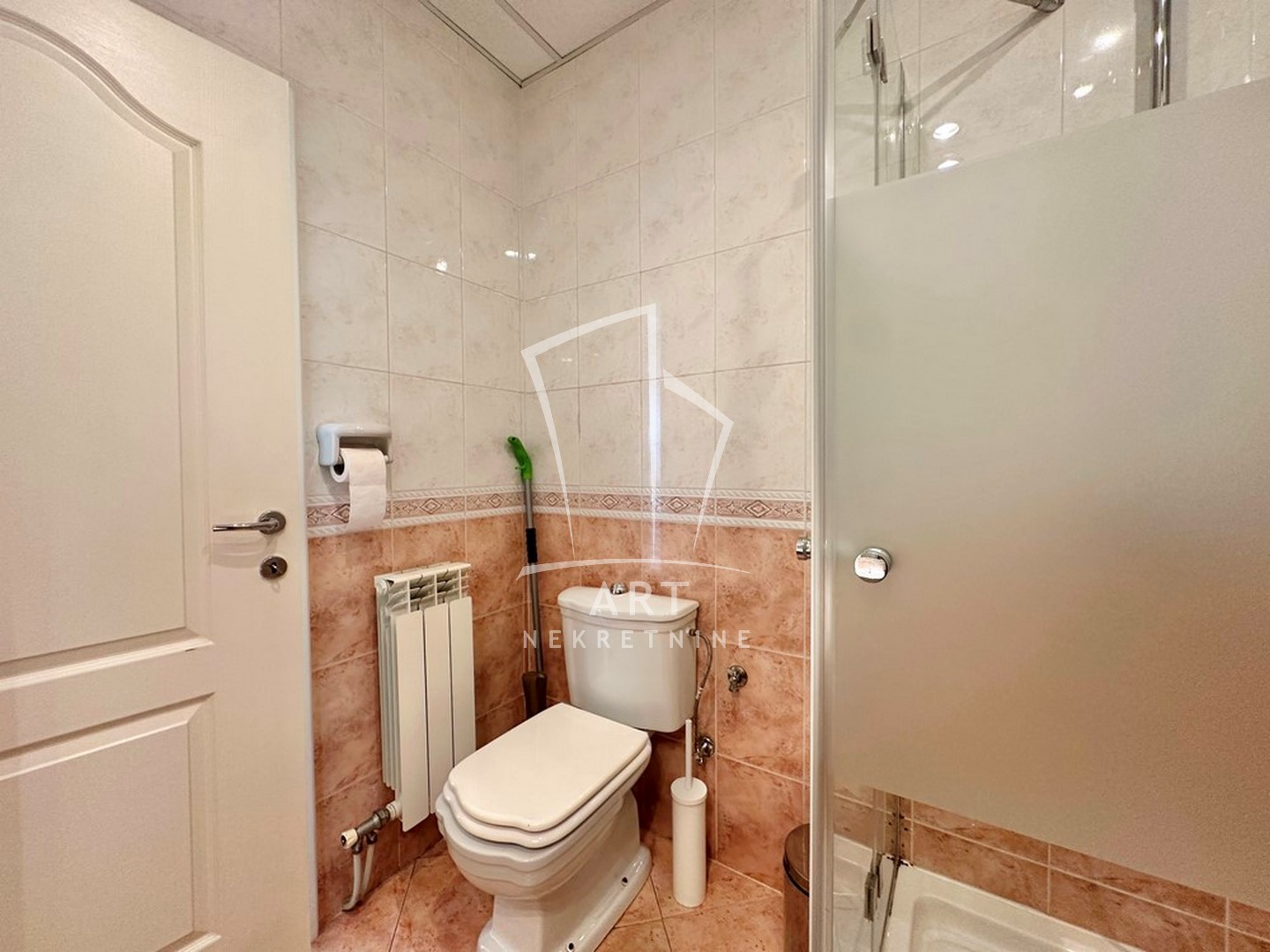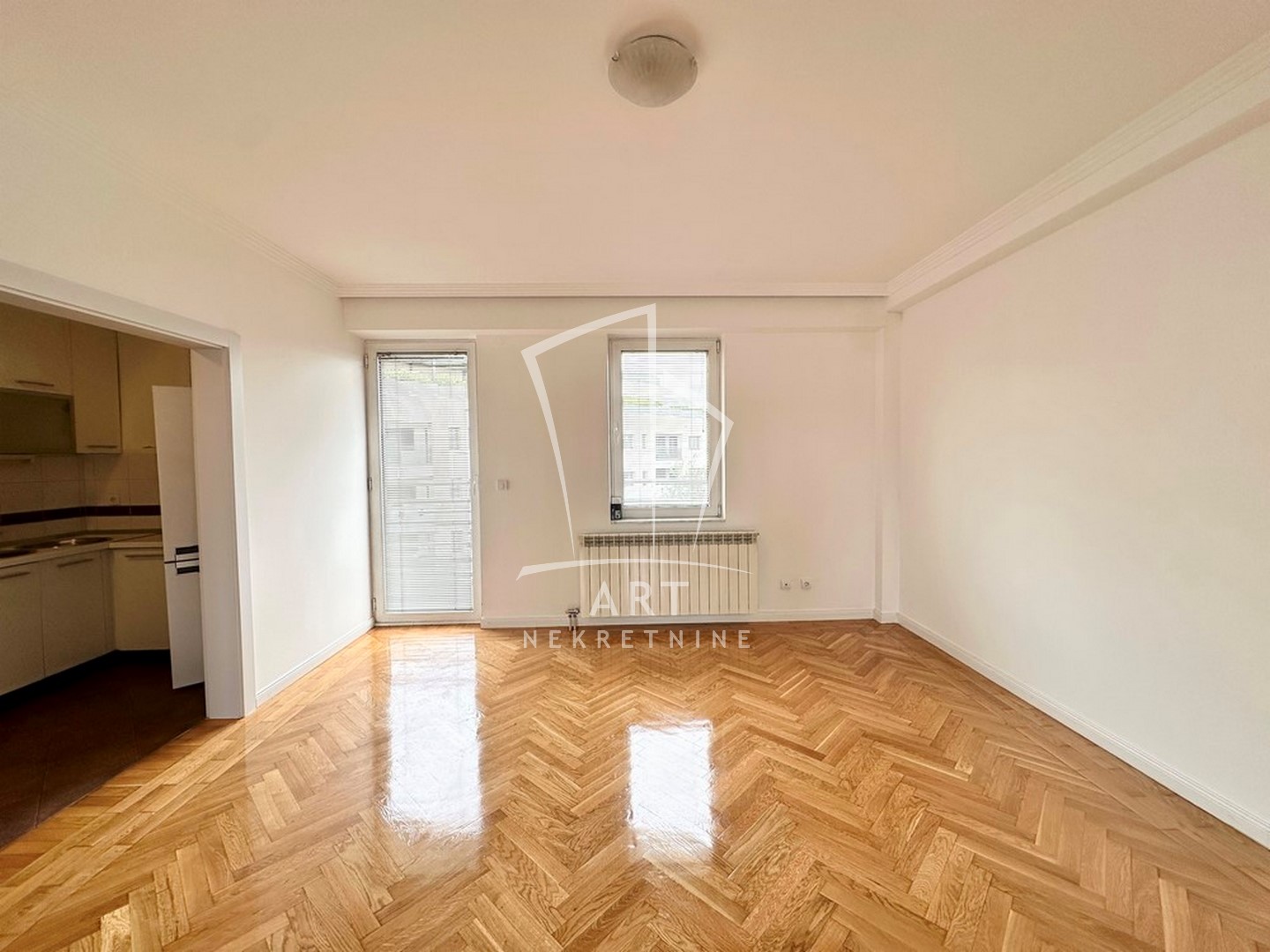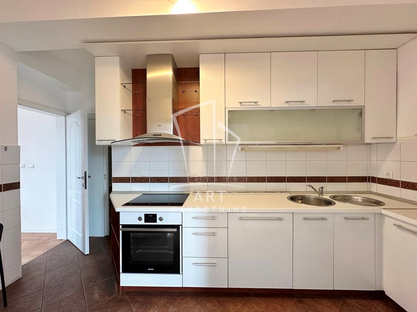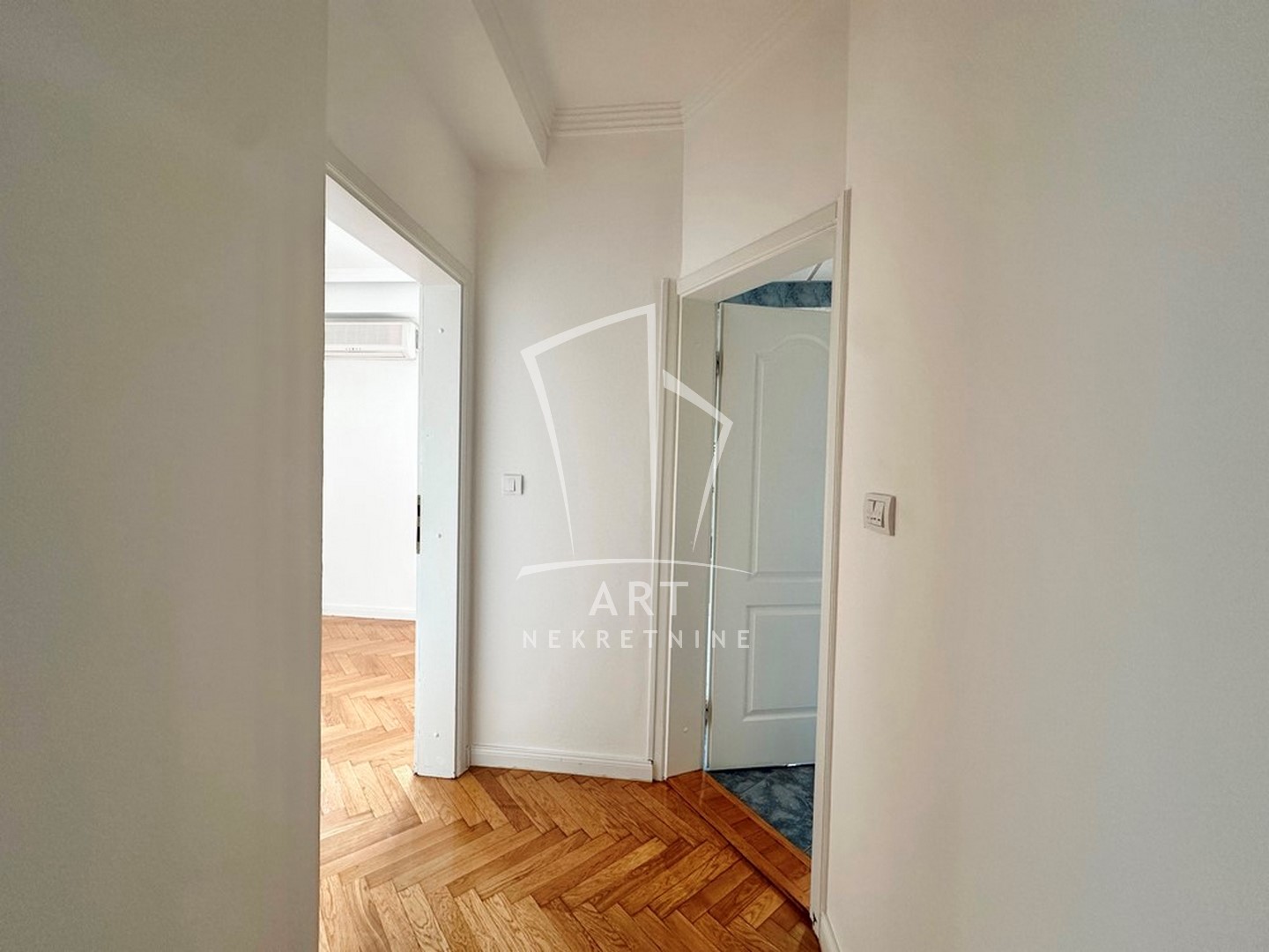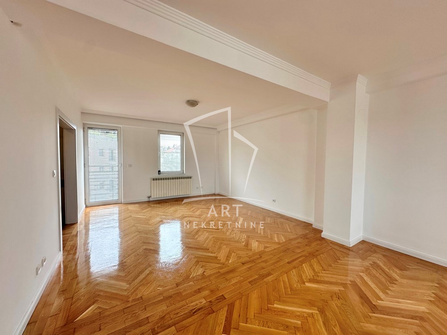 Izdaje se odličan stan u Nebojšinoj ulici.Sam na spratu ,četvrtom a zgrada ima V spratova.Svetao, dvostrano orijentisan.Spavaći blok odvojen sa zasebnim kupatilom za gospodarsku sobu. Veliki dnevni boravak salonskog tipa,kuhinja. Ima tri mokra čvora.Nema buke. Nenamešten.Ima svoju garažu za mali auto. Obavezan depozit.