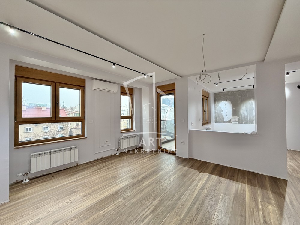 Stan sa dva garažna mesta u novogradnji sa urednom dokumentacijom, na samo četiri minuta hoda od Kalenić pijace u mirnoj i slepoj ulici.