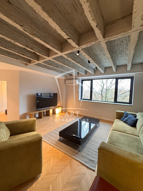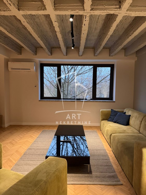 Moderan, industrijski dizajniran stan sa pogledom na Tasmajdanski park. Stan je potpuno nov, sredjen , neuseljavan.Dve komforne spavace sobe, dnevni boravak, moderna kuhinja potpuno opremljena, trpezarijski prostor, dva mokra cvora. Kreiran za moderne ljude, koji preferiraju centralne gradske lokacije a opet dovoljno uvucen, tih i miran.