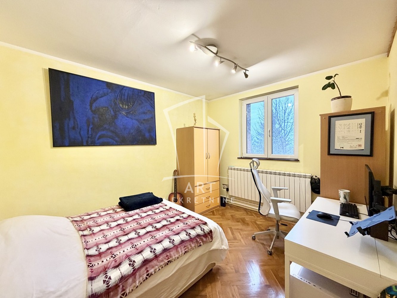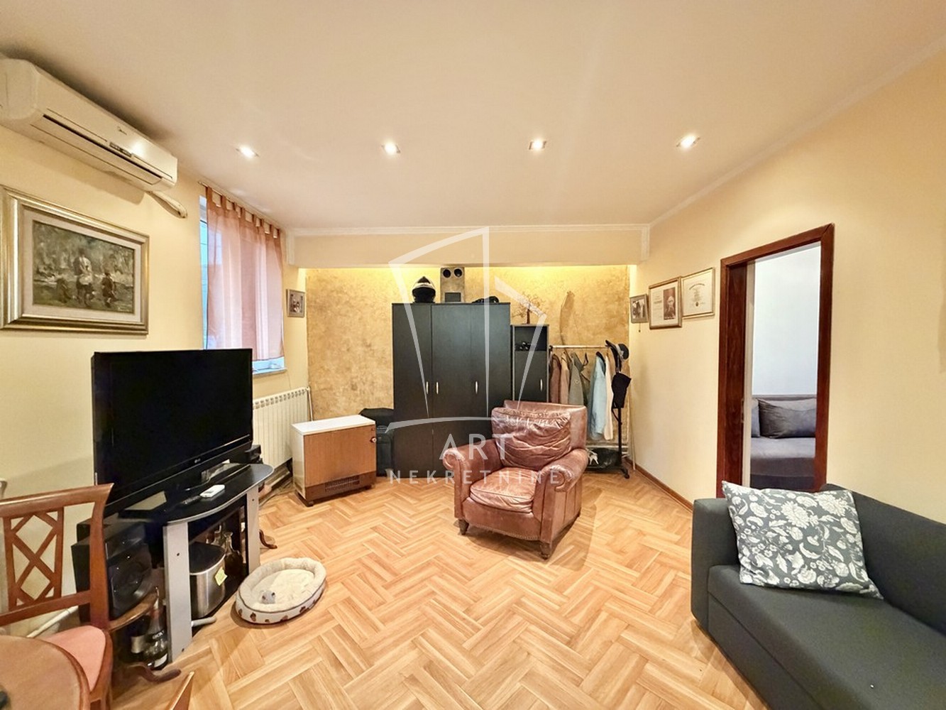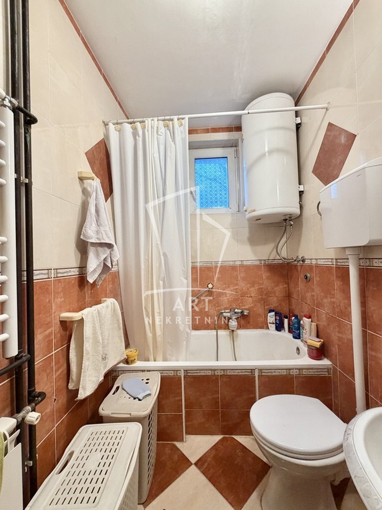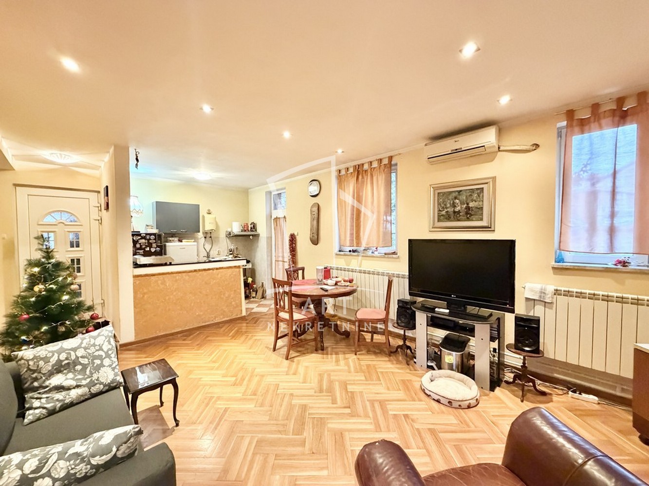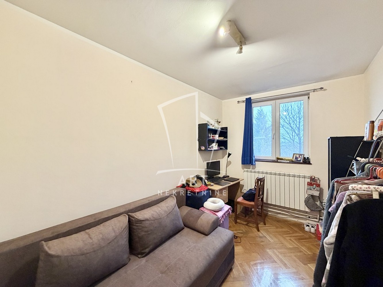Uknjižen, dvoiposoban stan u kući, 62m2 plus terasa 9,7 m2, na prvom spratu od jednog sprata, ispod je stan u prizemlju, grejanje kombinovano, ta peći ili eg na pelet ili klime, ostava, podrum, i parking ispred dvosrišta, internet.