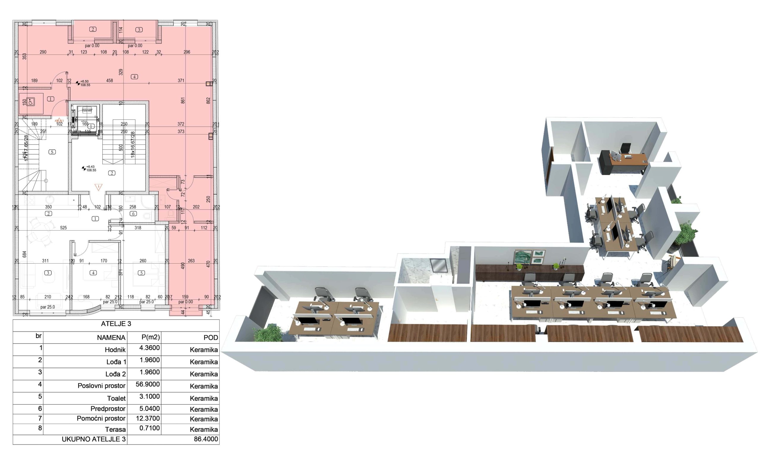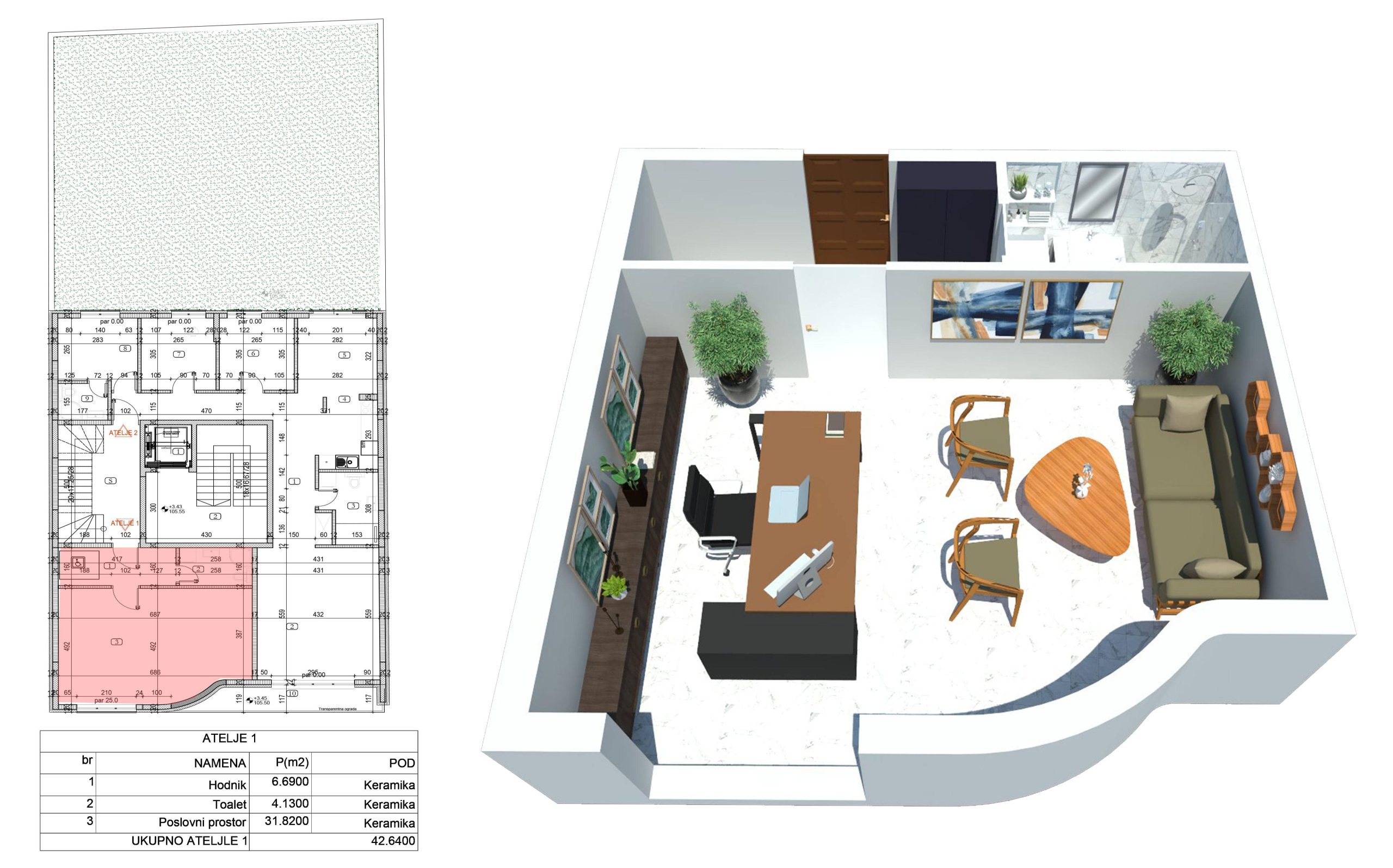 ATELJE A2 - 95.36m2 (sa dvorištem)