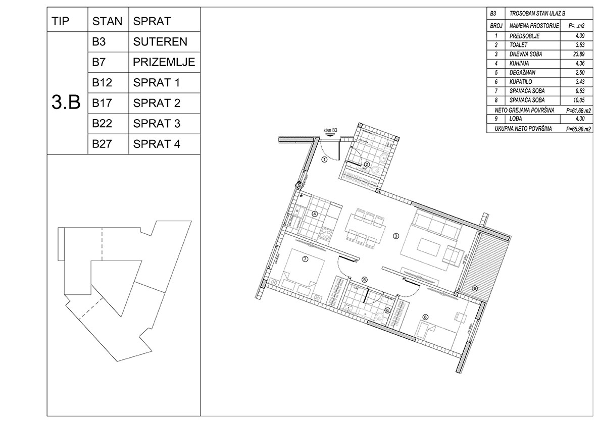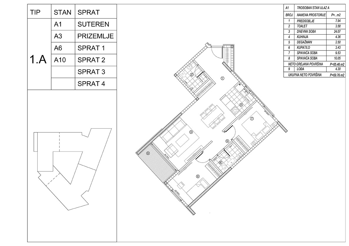 • Garaža i parking, obezbeđeni za sve stanare